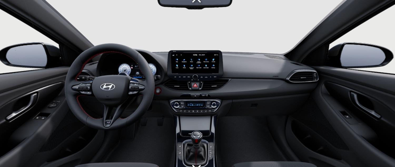Innenausstattung Stoff Schwarz mit roten Ziernähten