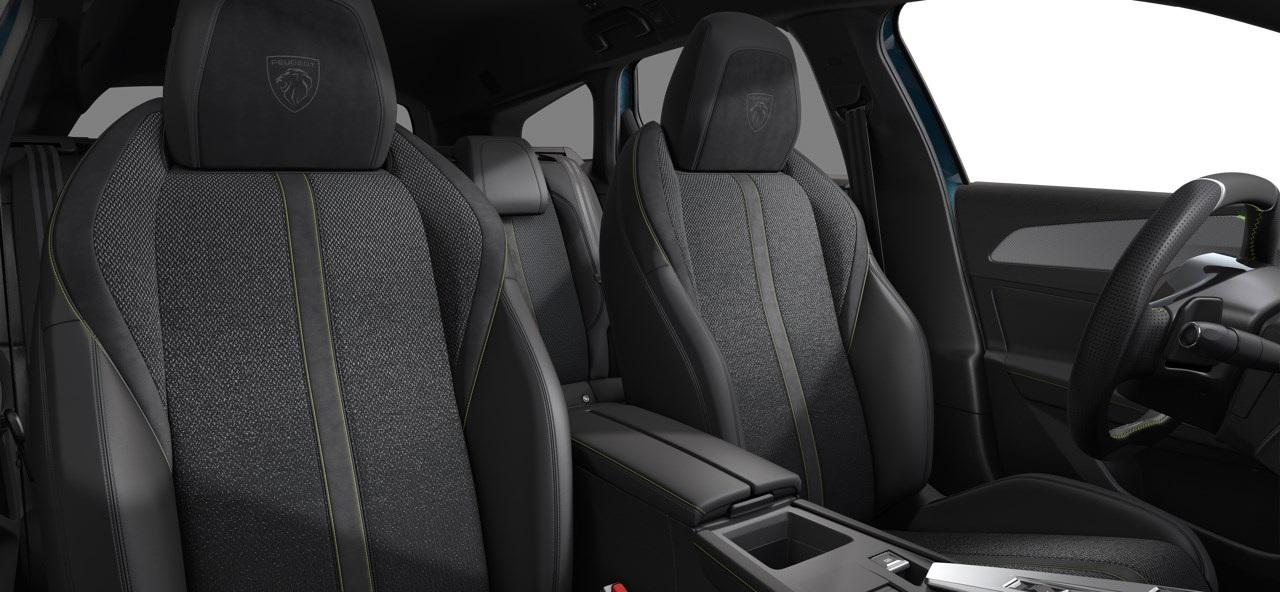 • NUR FÜR E-308: 18 Leichtmetallfelgen „Ottawa“, zweifarbig, 11-kW-On-Board-Charger, Wärmepumpe zur Senkung des Energieverbrauchs und Erhöhung der Reichweiten im realen Alltagsbetrieb, E-308“-Logo auf der Kofferraumklappe, Akustischer Fußgängerwarner (AVAS) Mode-3-Ladekabel (Typ 2, bis 7,4 kW), 6 Meter Länge Combo-Anschluss (Combined Charging System CCS) am Fahrzeug, Sitzheizung vorn, Stoff / Kunstleder Alcantara® in Schwarz mit Ziernähten in Adamin Grün (E-308) vorhanden