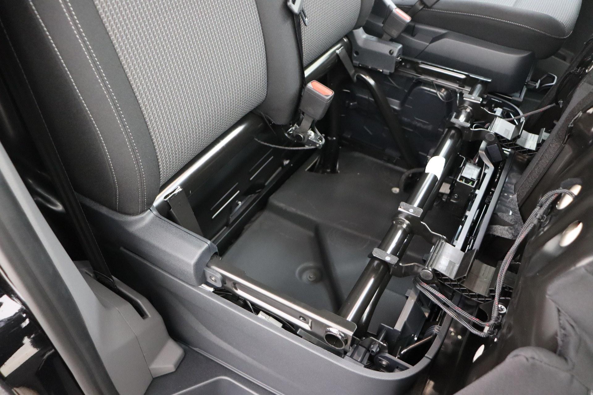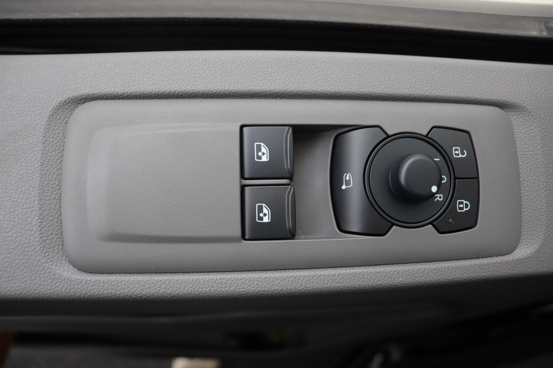 • Fahrerhaussitzpaket: Einzelsitz in "gestreiftem Stoff" mit Doppelbeifahrersitzbank und Sitzheizung