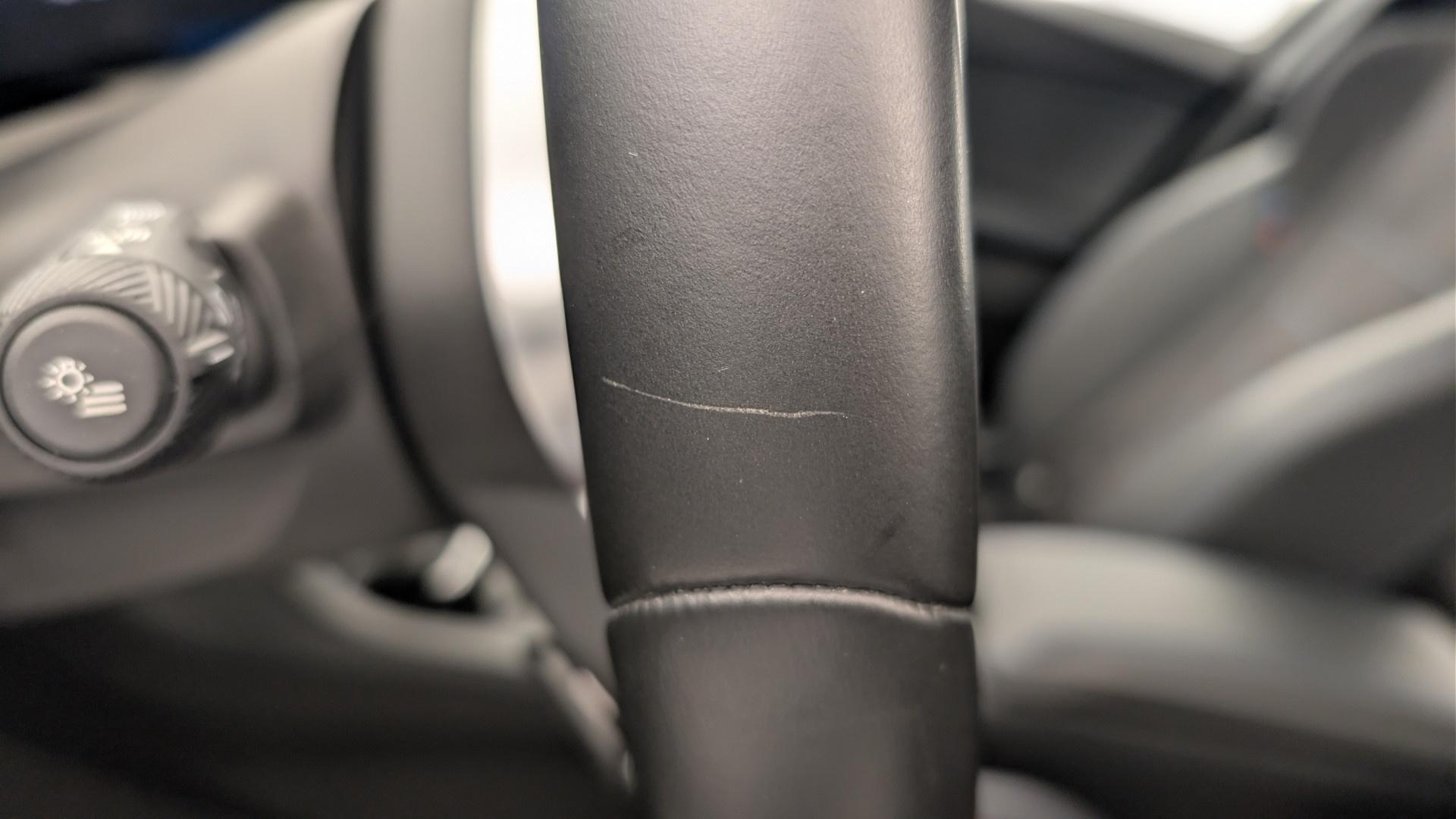 • M-Lenkrad mit Lederbezug (mit schwarzen Nahten) Drei Speichen. Schwarzer Lederkranz 'Walknappa', Einsatze in Perlchrom und Daumenstutze im Lenkrad. M-Logo auf dem Lenkradboden.