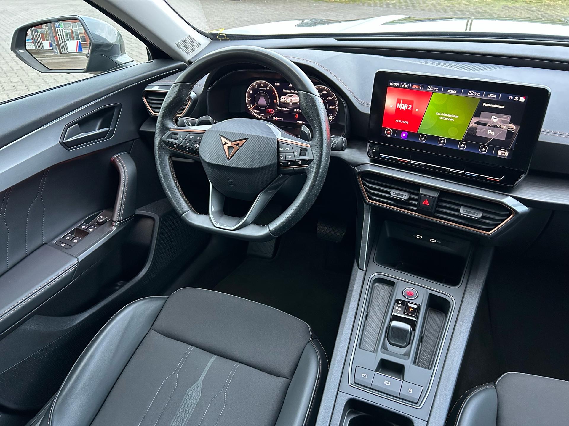 Cupra Formentor 1.5 TSI 150PS mit DSG-Getriebe in Midnight Schwarz Metallic mit folgender Sonderausstattung:Winter-PaketWireless Full LinkParklenkassistentEinparkhilfe vorne und hintenRückfahrkamera19" Leichtmetallräder "Exclusive I Black/Silver"Seitenairbags hinten sowie Knieairbag für FahrerAnhängerzugvorrichtung schwenkbarConnectivity Box3 Jahre oder 90.000km Garantie (ab Garantiebeginn)Das Fahrzeug kann deutschlandweit angeliefert werden.Elektrische Fensterheber vorne und hintenHöhenverstellbares LenkradMittelarmlehneHöhenverstellbarer Fahrer- und BeifahrersitzLendenwirbelstütze für Fahrer- und BeifahrerInnenspiegel automatisch abblendendLaderaumabdeckungDoppelter LaderaumbodenSitzbank hinten geteiltRadio / USBBluetooth / FreisprecheinrichtungReifendruckkontrolleRückleuchten mit LEDAußenspiegel elektrisch verstell,- beheiz- und anklappbarSchaltwippenLED InnenlichtpaketVoll LED ScheinwerferFernlichtassistentSpurhalteassistentAutomatische Distanzregelung ACC und Umfeldbeobachtungssystem "Front Assist" mit City-Notbremsfunktion (Notbremsassistent und Abstandstempomat)EU-FahrzeugGarantiebeginn 03/2023Für weitere Fragen stehen wir Ihnen telefonisch oder per E-Mail gern zur Verfügung. Gern nehmen wir Ihr Fahrzeug in Zahlung. Bei Bedarf bieten wir Ihnen verschiedene Finanzierungsmodelle unserer Partnerbanken - individuell auf Sie zugeschnitten. Auch Finanzierungsübernahme, Verrechnung des Altfahrzeugs in die Neufinanzierung und Kreditablösung. Irrtümer, Zwischenverkauf und Änderungen vorbehalten. Ausstattungs- und Verbrauchsangaben basieren auf der Abfrage der VIN-Daten über das DAT SilverDAT System. In Einzelfällen kann es zu Datenfehlern kommen. Die gemachten Angaben gelten nicht als zugesicherte Eigenschaft im Sinne des BGB 434 Abs. 1 Satz 3.