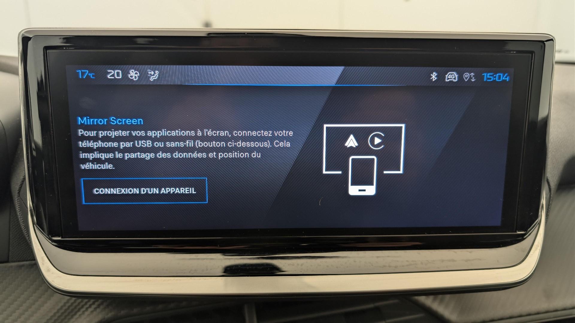 • Peugeot i-Connect DAB-Radio mit personalisierbarem 10"-HD-Farbtouchscreen, Bluetooth, drahtlosem Mirror Screen (Apple CarPlay/Android Auto), Wifi, 1 USB Typ C-Anschluss ( Data+charge) und 1 USB Typ C-Anschluss (Charge) an der Vorderkonsole.