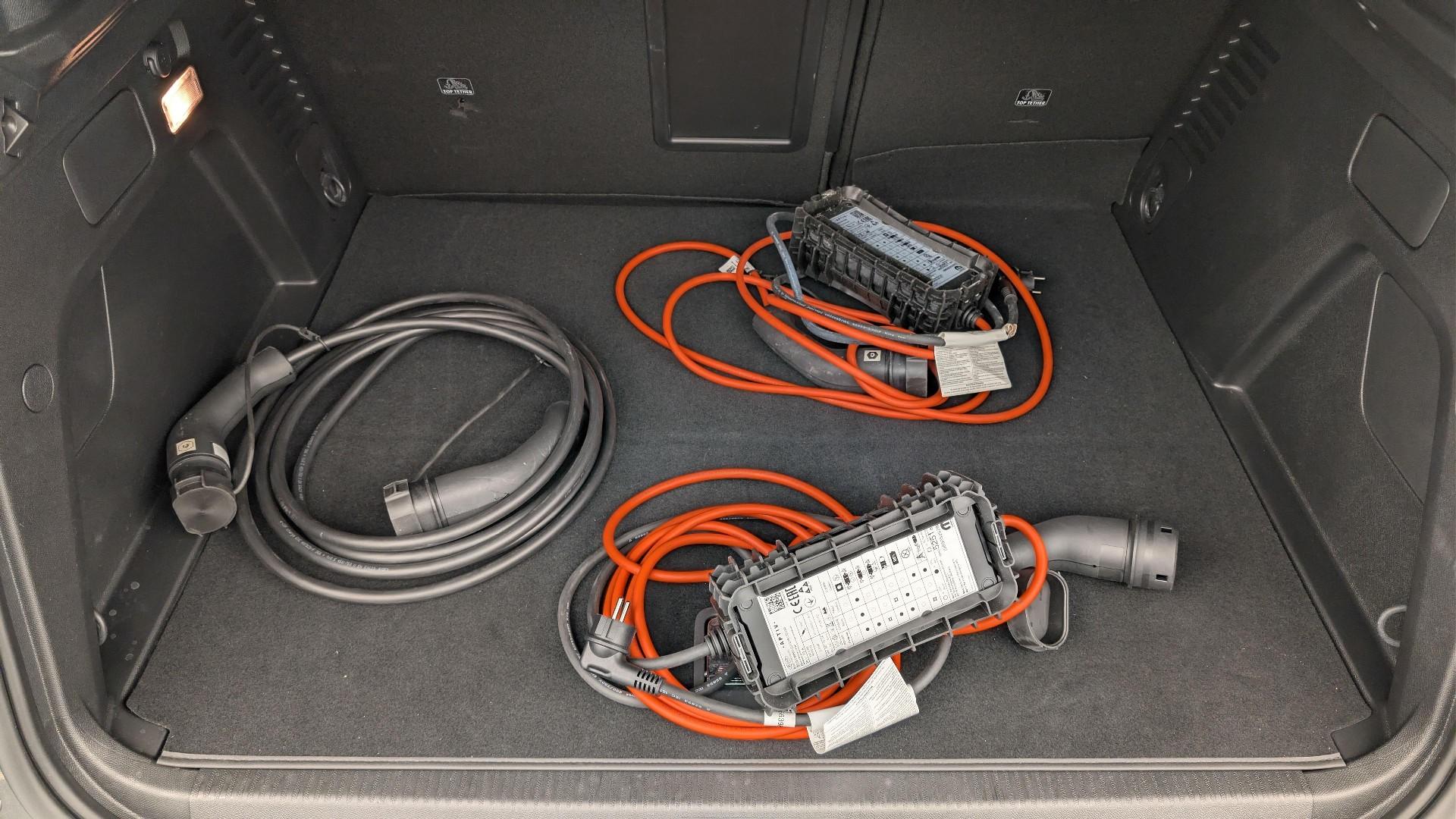 • Fester Kofferraumboden mit Gelenk fur den Zugang zum Staufach fur das Ladekabel.