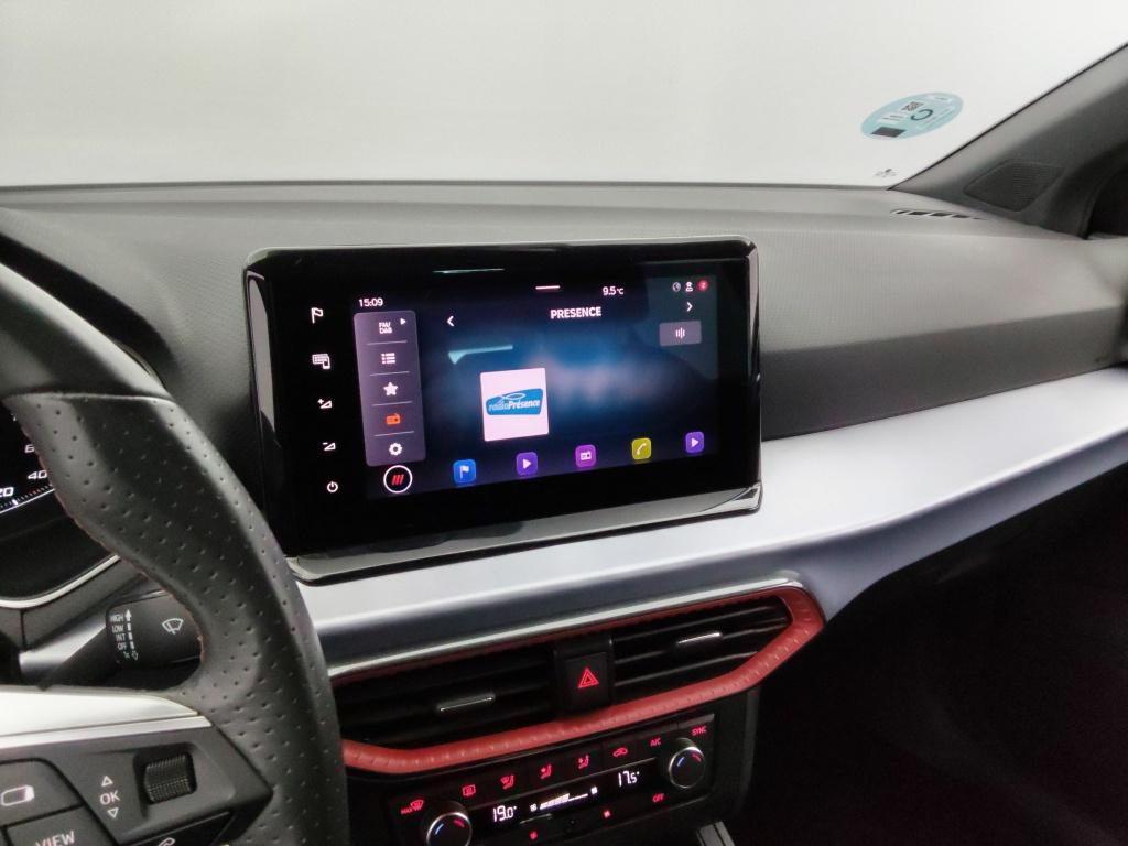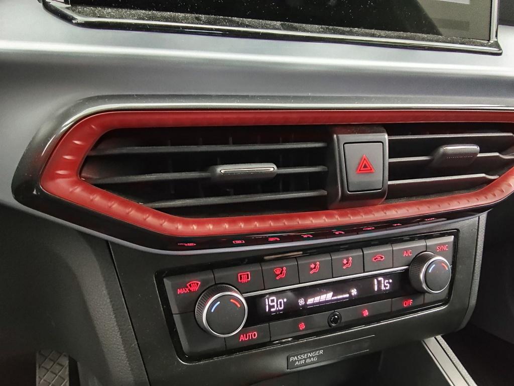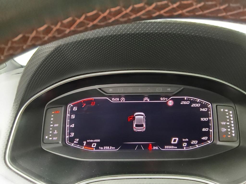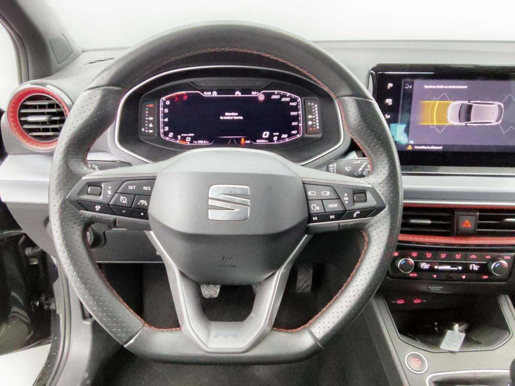 • Abgeflachtes Multifunktions-Sportlenkrad in perforiertem Nappaleder mit roten Nahten und FR-Logo.
