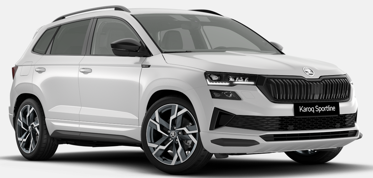 Innenausstattung Design Selections / Interieur Sportline Suite: Komfortsitze in Leder/Kunstleder; Pedale in Edelstahl-Ausführung; Dekor Sportline; LED-Ambientebeleuchtung: Armaturenbrett, Türen, Fußraum; Einstiegsbeleuchtung vorne mit Skoda Schriftzug; Make-up-Spiegel mit LED-Beleuchtung (Fahrer- und Beifahrer-Sonnenblende); Dachhimmel schwarz