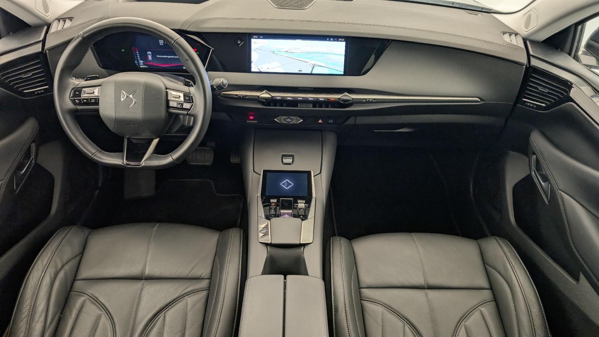 • Innenausstattung Basaltschwarzes genarbtes Leder und DS Canvas: Heller Dachhimmel Turverkleidungsdekorationen Guillochiertes Chrom Lenkrad in Mistral-Narbenleder Mittelkonsole in Mistral DS Canvas Armaturenbrett in DS Canvas Basaltschwarz in Schildpattoptik Turverkleidungen in DS Canvas Basaltschwarz in Schildpattoptik Polsterung Basaltschwarzes genarbtes Leder und DS Canvas Mittelteile der Vordersitze, Mittelteil der hinteren ausseren Sitze und Vorderteil der Kopfstutzen aus Leder. Seitenwangen der Vordersitze, Mittelarmlehne und Mittelsitz hinten sowie Seiten- und Ruckenteile der Kopfstutzen in Canvas DS.